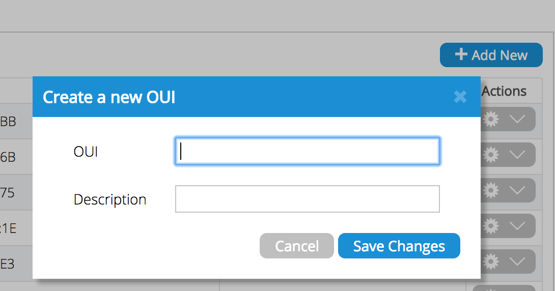 To add a new manufacturer, simply click on the add button, specify an OUI (Organizationally Unique Identifier which is the 3 most significant octets of the MAC address) and optionally a description for the manufacturer. Note that the OUI cannot be a multicast address